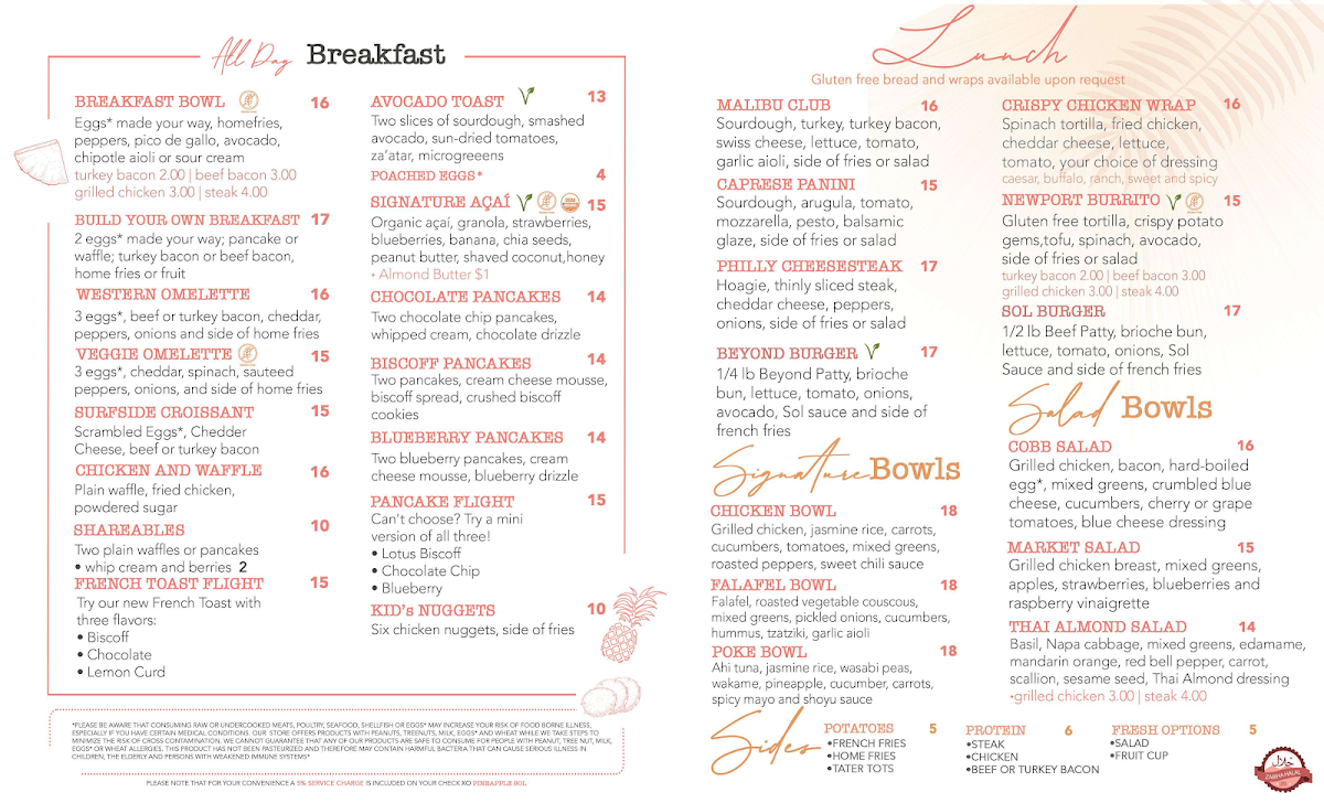 Pineapple Sol Cafe Menu